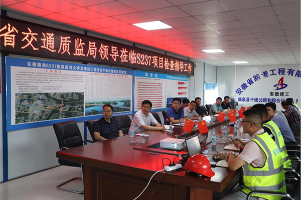 6月10日,安徽交通建設工程質量監督局公路監督處處長高學華一行赴臨泉S237泉河大橋項目進行“安全月”督查指導。