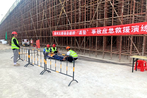 6月11日,路面分公司滁州大橋項(xiàng)目在施工現(xiàn)場(chǎng)組織開(kāi)展高處墜落應(yīng)急演練。本次演練由項(xiàng)目部主辦,各協(xié)作隊(duì)伍參與,業(yè)主及總監(jiān)代表現(xiàn)場(chǎng)指導(dǎo)。