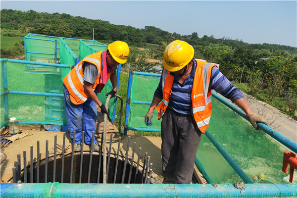 在土方施工現場,機械操作人員坐在悶熱的駕駛室里,對路基進行上土、布灰、拌和、碾壓等作業,豆大的汗珠夾雜著粉塵在他們的臉頰上留下道道痕跡。在橋梁施工現場,一個個忙碌的身影穿梭在場區,氣溫雖高,也高不過他們的工作熱情。在預制場,施工人員進行箱梁底腹板鋼筋綁扎,他們工作服濕了又干,干了又濕,但是沒有人懈怠。