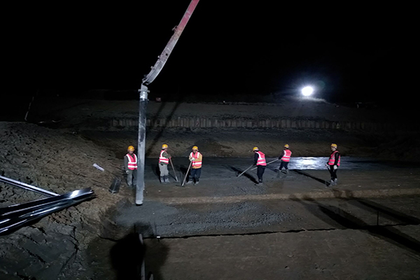 派河口船閘項目第一塊閘室地板墊層澆筑