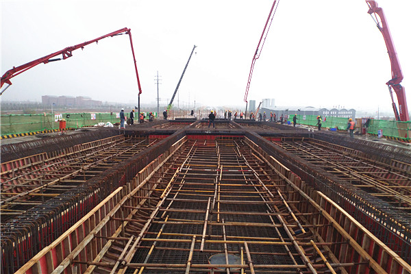 本次澆筑嚴格按照橋梁工程節(jié)點目標開展,為保證首件制工作順利展開,項目部超前謀化、提前部署,配備了充足的人力、設備和材料,堅決做到現(xiàn)場安全防護措施到位,管理人員嚴把安全和質(zhì)量關(guān),確保順利澆筑完成。現(xiàn)澆箱梁的順利澆筑,鼓舞了參建人員的士氣,為進一步加快引橋橋梁工程上部結(jié)構(gòu)全部施工創(chuàng)造了有利條件。