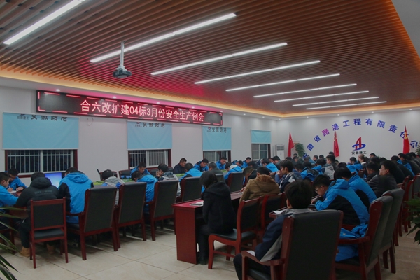 3月3日,合六改擴建04標召開3月生產調度會暨安全生產例,項目負責人主持會議,項目部全體人員及各班組負責人參加會議。
