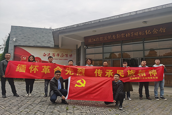 4月20日,為慶祝紀念建黨100周年,深化“四史”學習教育,二分公司黨支部組織黨員、入黨積極分子赴蚌埠市渡江戰役總前委孫家圩子舊址紀念館開展“緬懷革命先烈、傳承民族精神”主題愛國主義教育基地參觀活動。