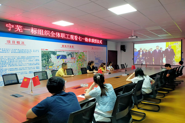 6月29日,寧蕪高速一標(biāo)項(xiàng)目組織職工觀看“七一勛章”頒授儀式。