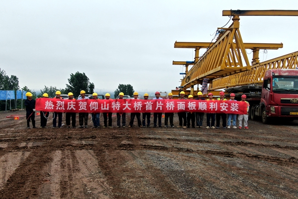 滁天高速02標項目仰山特大橋第一塊橋面板順利架設