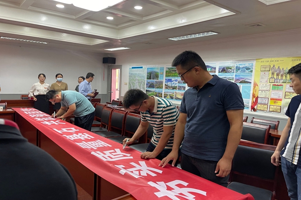 在第43個全國“質量月”到來之際,港新公司組織全體職工開展“質量月”動員會并進行質量月條幅簽字。