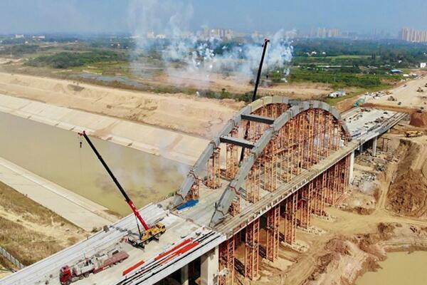 引江濟淮工程北緯二路橋工程鋼拱順利合龍