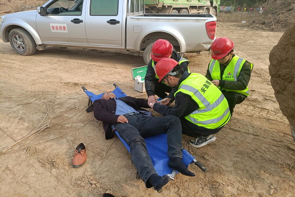 演練模擬班組人員在清掃場地路面時,被現(xiàn)場挖掘機(jī)撞傷,發(fā)生“車輛傷害”事故,項(xiàng)目部根據(jù)應(yīng)急預(yù)案進(jìn)行事故處理的全程演練。此次演練應(yīng)急預(yù)案編制完善、具體、可行,演練過程貼近實(shí)戰(zhàn)、注重實(shí)效,應(yīng)急救援領(lǐng)導(dǎo)小組指揮有方、部署周密,各救援小組分工明確、配合有力,參演人員精心準(zhǔn)備、發(fā)揮自如,達(dá)到預(yù)期效果。