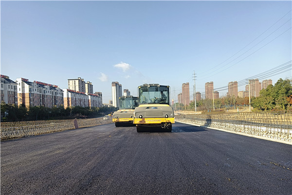 明光市嘉山大道上跨橋項目順利完成瀝青下面層試驗段攤鋪