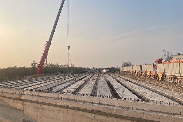 由于該項目施工環(huán)境復(fù)雜,運梁路線需穿過村莊,安全風(fēng)險高且極易造成道路擁堵,大大制約了梁板架設(shè)效率。在項目負(fù)責(zé)人精心組織協(xié)調(diào)下,項目部在保證質(zhì)量與安全的前提下,如期完成節(jié)點目標(biāo)。此次全線三座橋梁半幅梁板架設(shè)工作順利完成,不僅為橋面系施工提供了工作面,更進一步推動了項目建設(shè)進度,為實現(xiàn)春運前左幅貫通的年度目標(biāo)奠定了基礎(chǔ)。