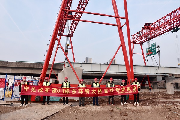 1月8日,隨著首件60跨鋼板梁的順利就位,寧蕪高速01標首件鋼板梁成功架設。