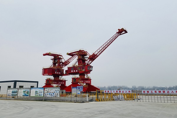 1月12日,阜陽港臨泉港區綜合碼頭工程20t-28m、40t-28m龍門起重機圓滿安裝完成。