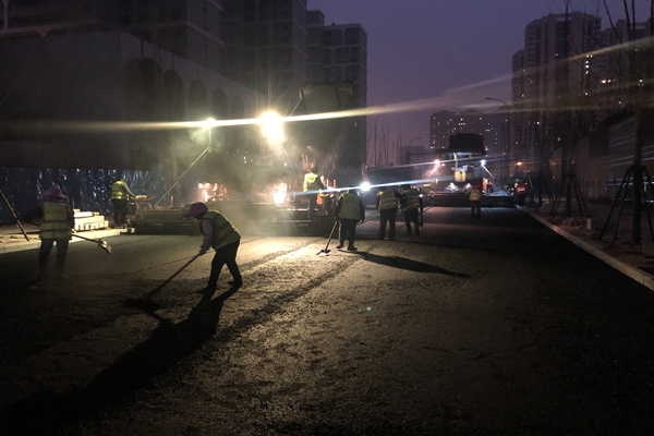 1月19日晚,該項目同德路、澄塘路1、澄塘路2、劉洼路等四條道路連夜攤鋪面層瀝青,力保年度節點目標。