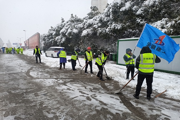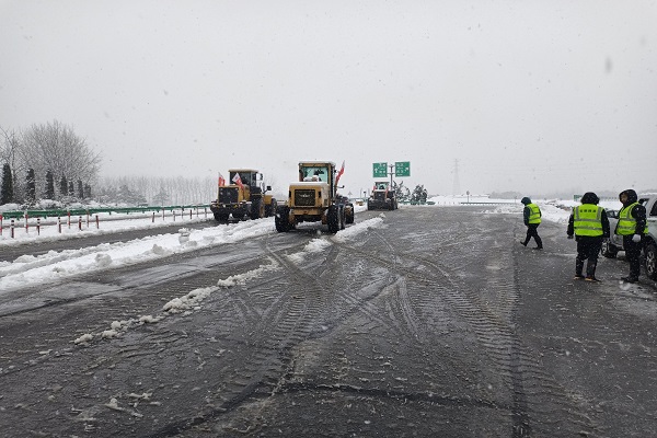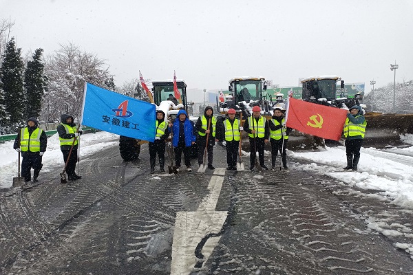 項目部積極組織保通協管人員,全線巡邏處理標段內高速路段交通事故,發生事故路段及時維護、設置警戒標志,配置拖車對事故車輛及時拖離。同時調集2臺平地機、4臺裝載機,號召項目全體黨員干部組成黨員先鋒隊,帶領項目職工近30人,積極投身抗冰除雪一線。經過近5個多小時的共同努力,桐城收費站站前廣場、收費站匝道區域的積雪得到了有效清理,標段內高速道路安全暢通,得到業主及一路多方一致好評,展現了安徽路港的責任與擔當。