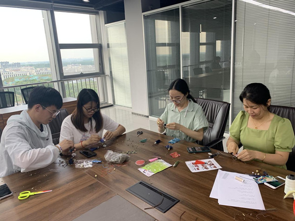 活動現場,全體職工首先學習了端午的歷史文化和習俗。隨后,大家齊動手,卷粽葉、裝餡料、扎麻繩、綁粽子,粽葉飄香,歡聲笑語,各式各樣的漂亮粽子瞬間成型;另一邊,大家穿針引線,裝艾葉,封香囊,串珠子,一個個造型可愛、飽滿精致的香囊展現眼前。整個現場熱鬧非凡,香氣襲人,到處都洋溢著和諧溫馨的端午氛圍。