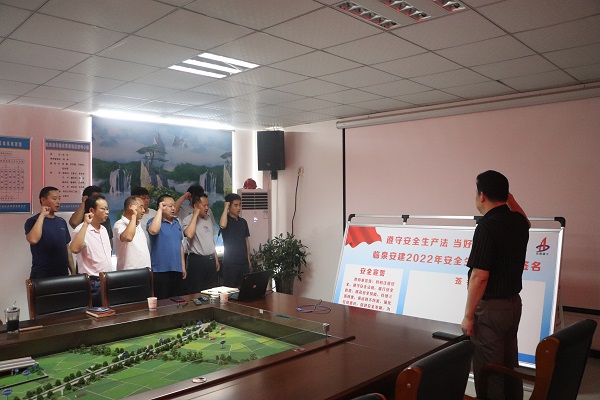 活動中,臨泉安建項目公司總經(jīng)理、聯(lián)合黨支部書記陸林帶領(lǐng)項目公司全體職工、各參建單位安全負(fù)責(zé)人學(xué)習(xí)習(xí)近平總書記關(guān)于安全生產(chǎn)重要論述,并組織全體人員觀看安全警示教育宣傳專題片《遵守安全生產(chǎn)法,當(dāng)好第一責(zé)任人》,活動要求全體單位切實落實安全生產(chǎn)責(zé)任,從源處杜絕安全隱患,保障安全生產(chǎn)質(zhì)量。