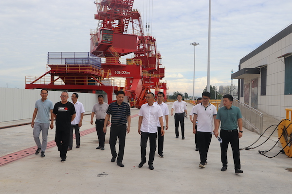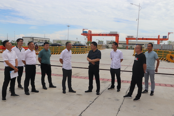尹飛一行先后參觀了碼頭作業區、倉庫堆場區、生產調度中心,聽取了陸林對阜陽港臨泉港區綜合碼頭建設規模、設計理念,設備參數等的介紹,雙方還就碼頭設計、建設、生產運營等進行了深入交流。