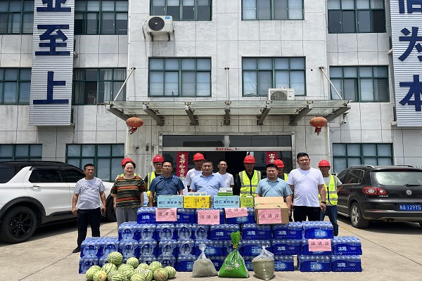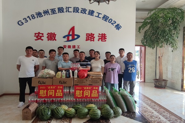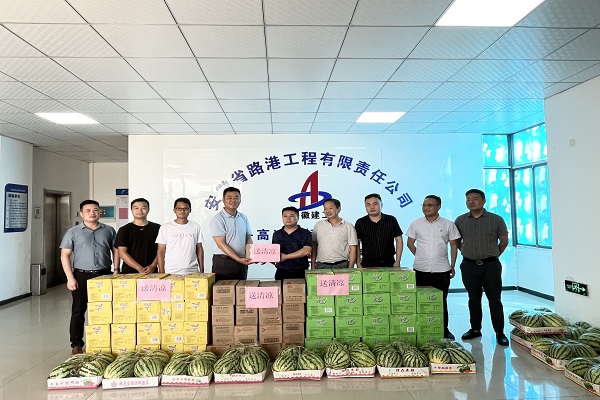 慰問人員給一線職工送去了西瓜、涼茶、綠豆、礦泉水等防暑降溫用品,叮囑職工在高溫天氣要合理安排作息時間,避開中午高溫時段,錯時施工,確保身體健康。