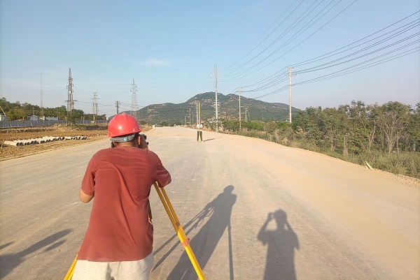 夏日炎炎,為了保證渦河航道整治工程02標項目盡快交付使用,工程部頂著烈日,對已征地護岸進行施工放樣,為施工做好準備。