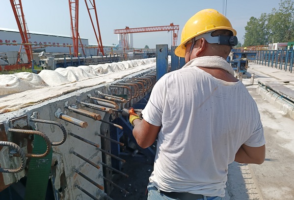 為完成業主下發的節點目標,后場梁板預制班組工人在高溫天氣依然奮斗在一線,進行梁板端面鑿毛處理,逐漸升高的氣溫,時刻都在考驗著施工作業人員。