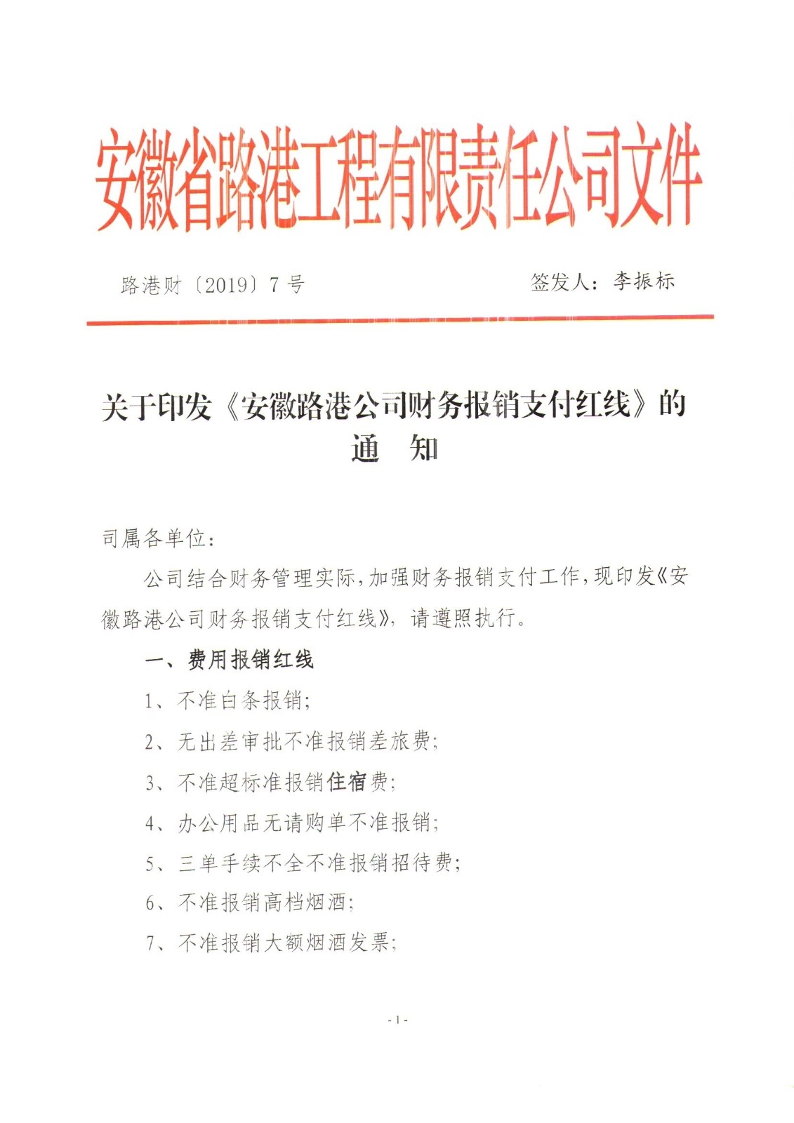 關于印發《安徽路港公司財務報銷支付紅線》的通知