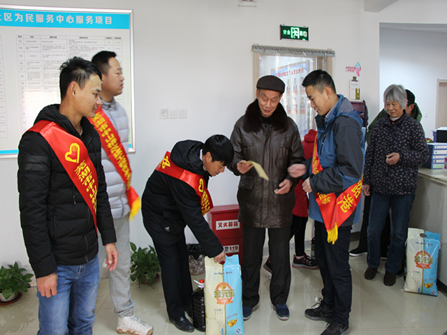 上午9時,在蕪湖市弋江區興隆街道居委會的安排下,項目部青年志愿者們來到弋江區興隆街道辦事處,為孤寡老人、貧困家庭送上菜籽油、大米、慰問金以及新年祝福。青年志愿者們悉心詢問他們的家庭境況和身體情況,并囑咐老人們季節變化要注意保暖,行動要注意安全,志愿者們真誠的問候讓老人們感受到了濃濃的溫情。