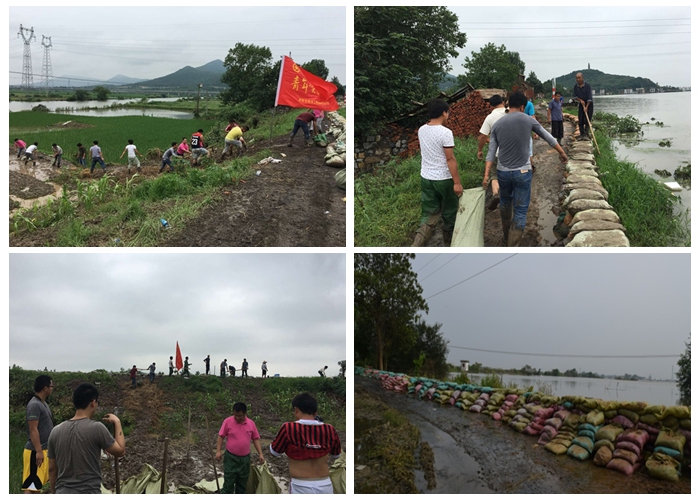 2016年7月1日,巢湖市境內(nèi)持續(xù)降雨,降雨量在每24小時50mm以上,屬于特大暴雨,項目部沿線的橋梁路基施工段落受影響嚴重。項目團支部立即成立了抗洪救險青年突擊隊,向每一名隊員發(fā)出了“做建工優(yōu)秀青年,打贏防汛攻堅戰(zhàn)”的號召。青年突擊隊員們發(fā)揚“召之即來,來之能戰(zhàn),戰(zhàn)之能勝”的精神,快速響應(yīng),奔赴抗洪一線。石黃路為當?shù)氐某鲂幸溃瑸楸Wo當?shù)厝罕娚敭a(chǎn)安全,保障車輛的正常通行,青年突擊隊員持續(xù)搶險4個小時,堆碼沙袋300余條,保住了這條要道的通暢。