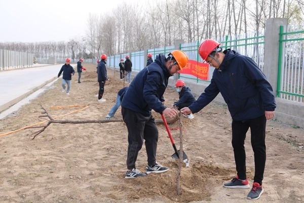 綠色象征著希望和春天,象征著一個嶄新的起點。青年職工們分工協作、默契配合,挖坑扛苗、揮鍬鏟土、扶苗夯實、澆水成樹,一棵棵樹苗迎風挺立,生機勃勃。