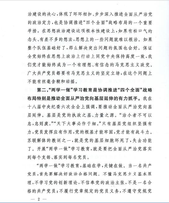 習近平在中央政治局審議“兩學一做”學習教育方案時的講話