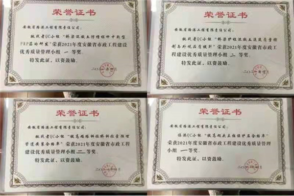 項目先后獲得工法2項,發明2項,專利4項,發表SCI論文2篇,核心論文10篇,省級QC成果一等獎3項、二等獎4項,市級QC成果一等獎3項、二等獎4項、“智能CFRP筋替換矮塔斜拉橋斜拉索”的微創新1項。當前項目正在籌劃申報交通部平安工地、集團安全文明標準化示范工地、潁州杯、黃山杯等獎項。