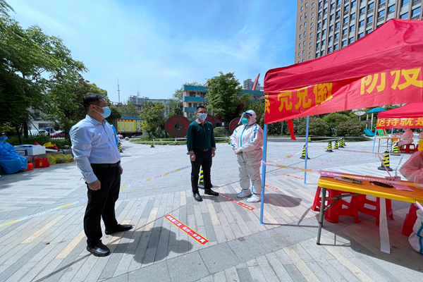 張鑫對港新公司機關及所屬項目部疫情防控值班、防疫物資儲備、人員出入管控等情況進行了檢查,對參與城東街道進行核酸檢測志愿服務的職工進行了慰問。
