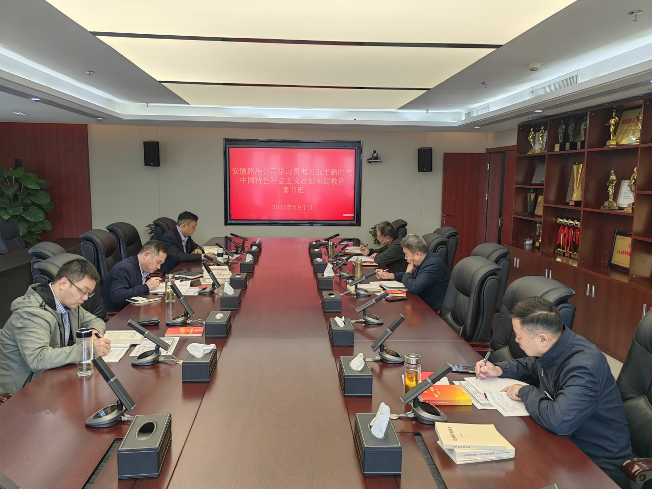 讀書班期間,班子成員帶頭認真研讀《習近平著作選讀》、《習近平新時代中國特色社會主義思想專題摘編》等指定書目,結合個人工作自我需求自行閱讀《習近平新時代中國特色社會主義思想學習綱要(2023年版)》、習近平總書記《論黨的自我革命》、《習近平新時代中國特色社會主義思想的世界觀和方法論專題摘編》、《習近平關于調查研究論述摘編》等選讀書目,參加了集團統一組織的專題講座,參觀了安徽省黨風廉政教育館,圍繞“安全生產推動公司高質量發展”“實現公司高質量發展闖新路,為安徽建工爭當中國建筑企業排頭兵貢獻路港力量“等問題開展深入研討交流,為推進主題教育扎實深入開展打牢堅實的思想理論基礎。