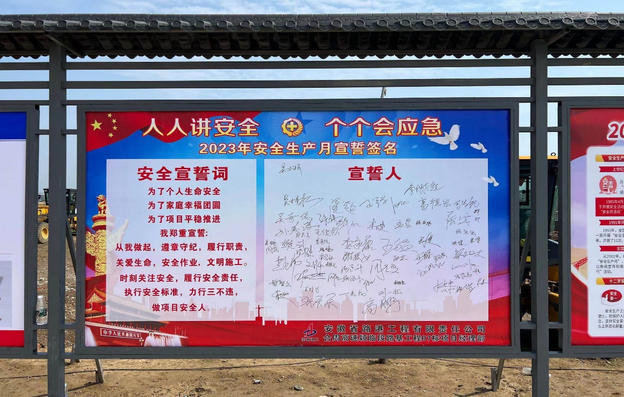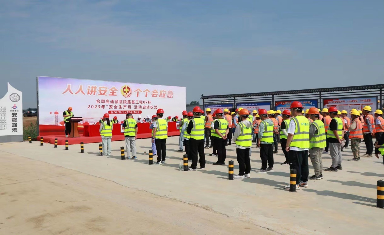 今年6月是全國第22個“安全生產月”,為深入學習貫徹習近平總書記有關安全生產的重要指示與要求,落實安全生產法律法規有關要求,嚴格執行公司安全生產規范,使項目職工與施工班組深刻領會安全生產的重要意義。合周高速潁臨段路基07標于6月1日舉行2023年“安全生產月”活動啟動儀式,安徽交控合周高速潁臨段項目辦吳林松主任、總監辦、駐地辦等人參加啟動儀式。