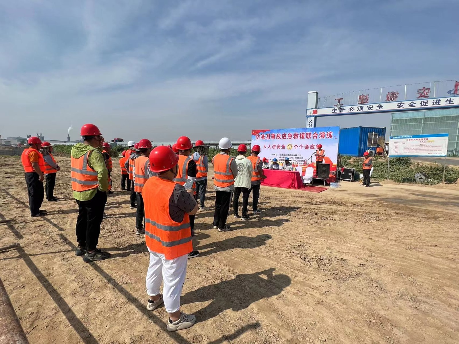 6月11日上午,為提高搶險應急救援能力,金沙河碼頭項目聯合泰山石膏碼頭項目開展防淹溺事故應急救援演練,安徽金沙河港務有限公司項目經理田紅國、江蘇安達金沙河碼頭總監辦總監孫華鋒參加演練。