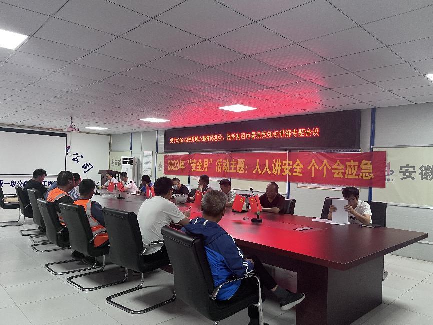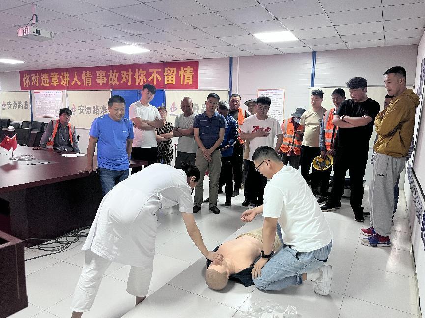 為增強企業(yè)員工的安全意識、強化應急救護知識和技能,增強員工應對突發(fā)事件、各類災害事故的自救、互救能力。在全國第22個安全生產月之際,G206-04標項目部圍繞“人人講安全 個個會應急”安全月活動主題,于6月9日下午開展夏季高溫中暑、心肺復蘇急救知識培訓,特邀安徽水建醫(yī)院總院主任護師李新愛對此次應急救護知識進行培訓,項目現(xiàn)場辦安全部負責人王紅永、總監(jiān)辦總監(jiān)余峰受邀參會。共有25人參與此次培訓。