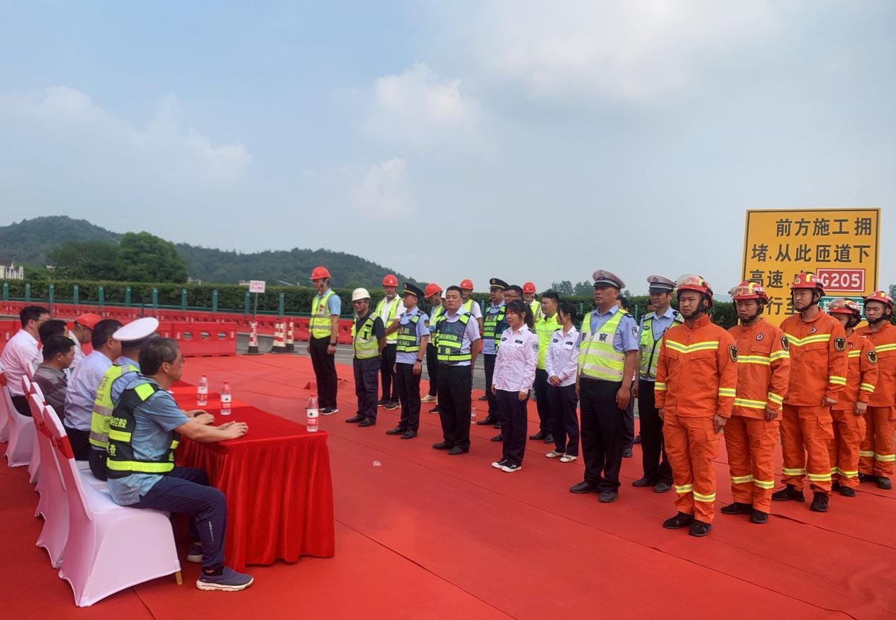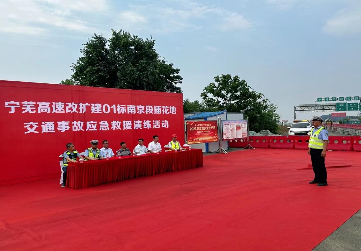 6月13日,寧蕪高速改擴建01標舉行南京段插花地交通事故應急救援演練。馬鞍山市副秘書長任本年、市應急管理局、市交通局、市衛健委、市交警支隊及項目參建單位參加。