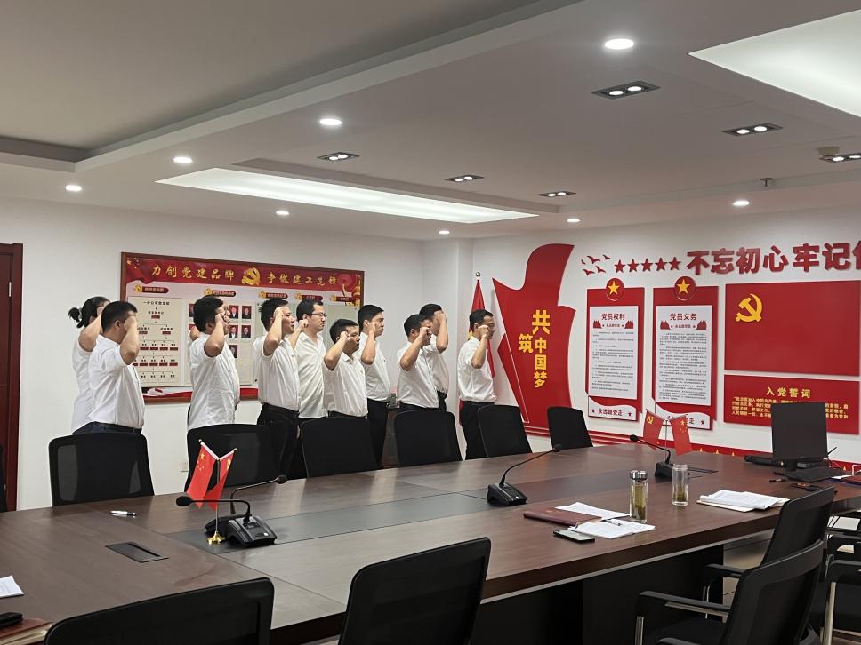 面向鮮紅的黨旗,由支部書(shū)記林虎帶領(lǐng)全體黨員鄭重宣誓,鏗鏘有力、擲地有聲的誓詞在耳邊響起,展示了黨員職工的責(zé)任與擔(dān)當(dāng),表達(dá)了對(duì)黨忠誠(chéng)、全心全意服務(wù)群眾的決心和意志。