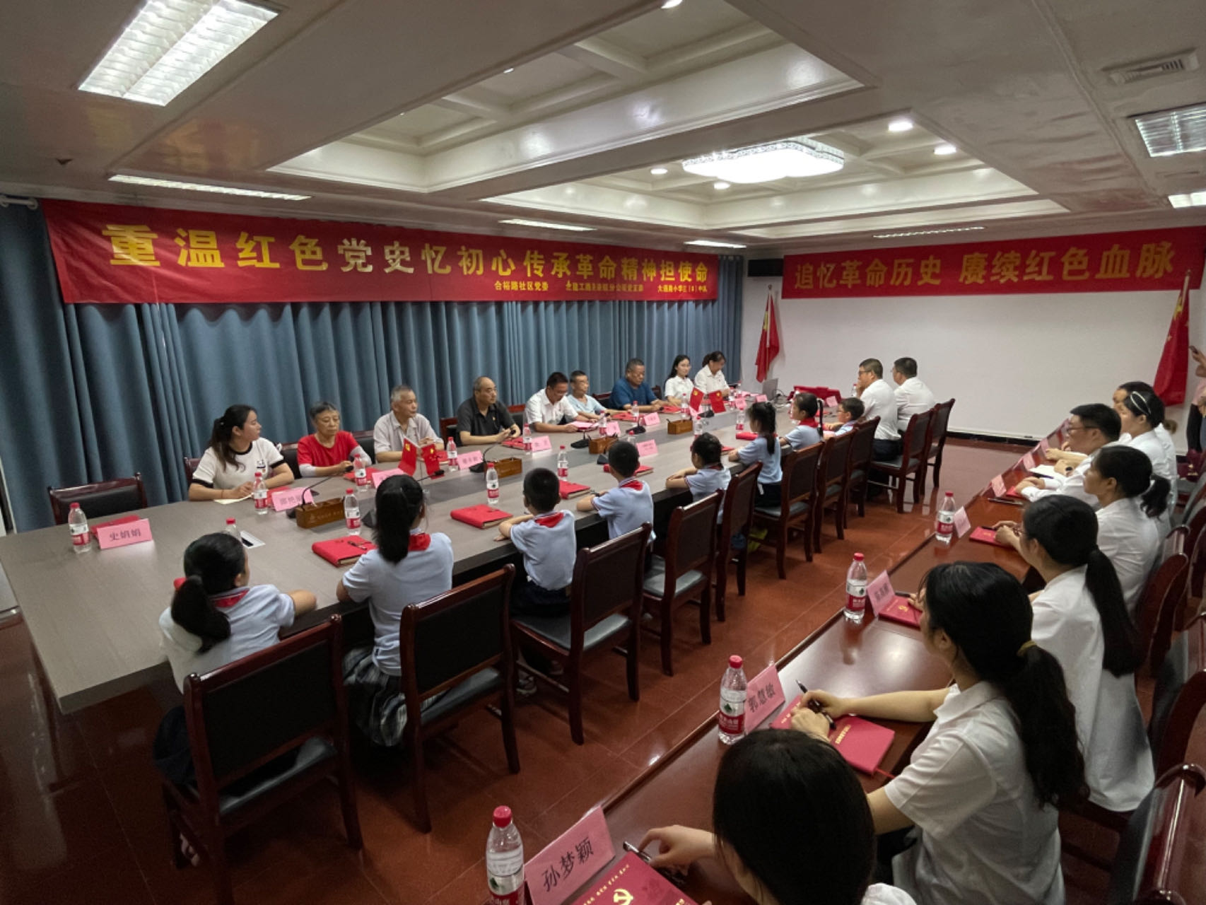 活動中,少先隊員們還同黨員同志一起手制黨旗和國旗,祝福祖國繁榮昌盛。