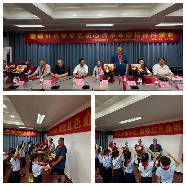 為慶祝中國共產黨建黨102周年,進一步引導和激發廣大黨員緊跟總書記、奮進新征程、建功新時代的步伐,做好黨員及青少年黨史學習教育,使紅色基因薪火相傳,建工路港港航分公司黨支部與合裕路社區黨委共建聯合開展“追憶革命歷史 賡續紅色血脈”書記上黨課活動。此次活動特邀了紅色前輩及七一前獲頒“光榮在黨50年”紀念章的老黨員到場,共同參加,城東街道合裕路社區黨委黨員代表、大通路小學三(6)中隊的少先隊員代表等參加活動。
