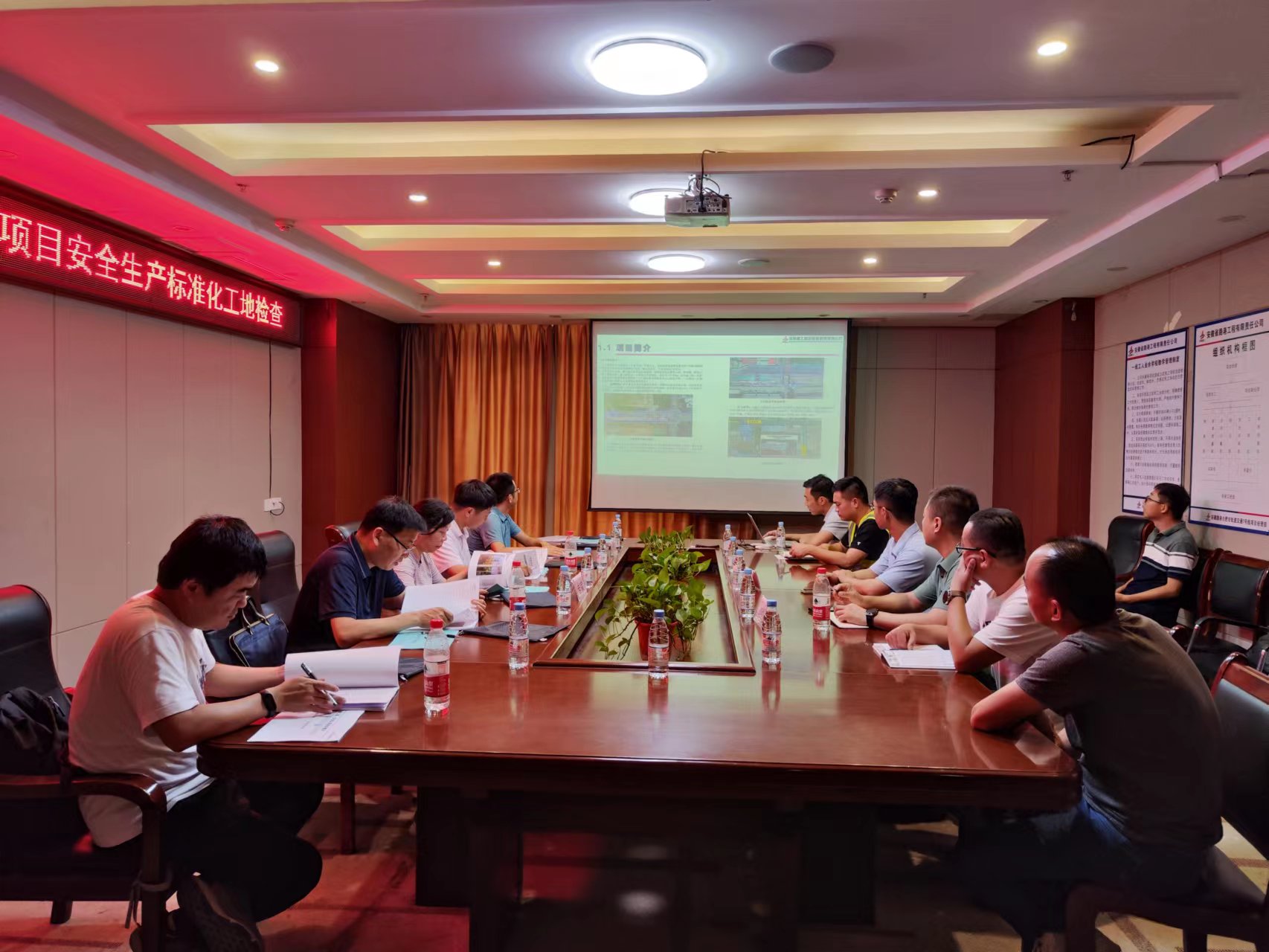 專家組一行深入施工現(xiàn)場,實地查看現(xiàn)場內(nèi)施工圍擋、臨邊防護(hù)、機(jī)械維保等現(xiàn)場安全生產(chǎn)管控措施,并詢問了解施工過程中的作業(yè)方法、防護(hù)手段等;隨后專家組聽取了項目領(lǐng)導(dǎo)關(guān)于安全生產(chǎn)標(biāo)準(zhǔn)化的專題匯報,并對危大工程專項方案以及施工過程中的見證性資料進(jìn)行了嚴(yán)格檢查。專家組成員一致認(rèn)為合肥市軌道交通7號線項目施工現(xiàn)場文明有序,安全體系機(jī)制健全,過程管控資料規(guī)范,對項目部爭創(chuàng)合肥市軌道交通建設(shè)工程安全生產(chǎn)標(biāo)準(zhǔn)化工地表達(dá)了肯定!