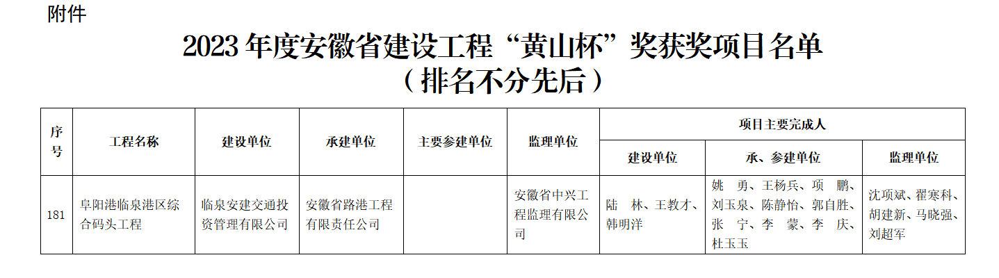 7月25日,安徽省住房和城鄉建設廳公布了2023年度安徽省建設工程“黃山杯”獎獲獎項目名單。建工路港集團承建的阜陽港臨泉港區綜合碼頭工程榮獲該項殊榮。