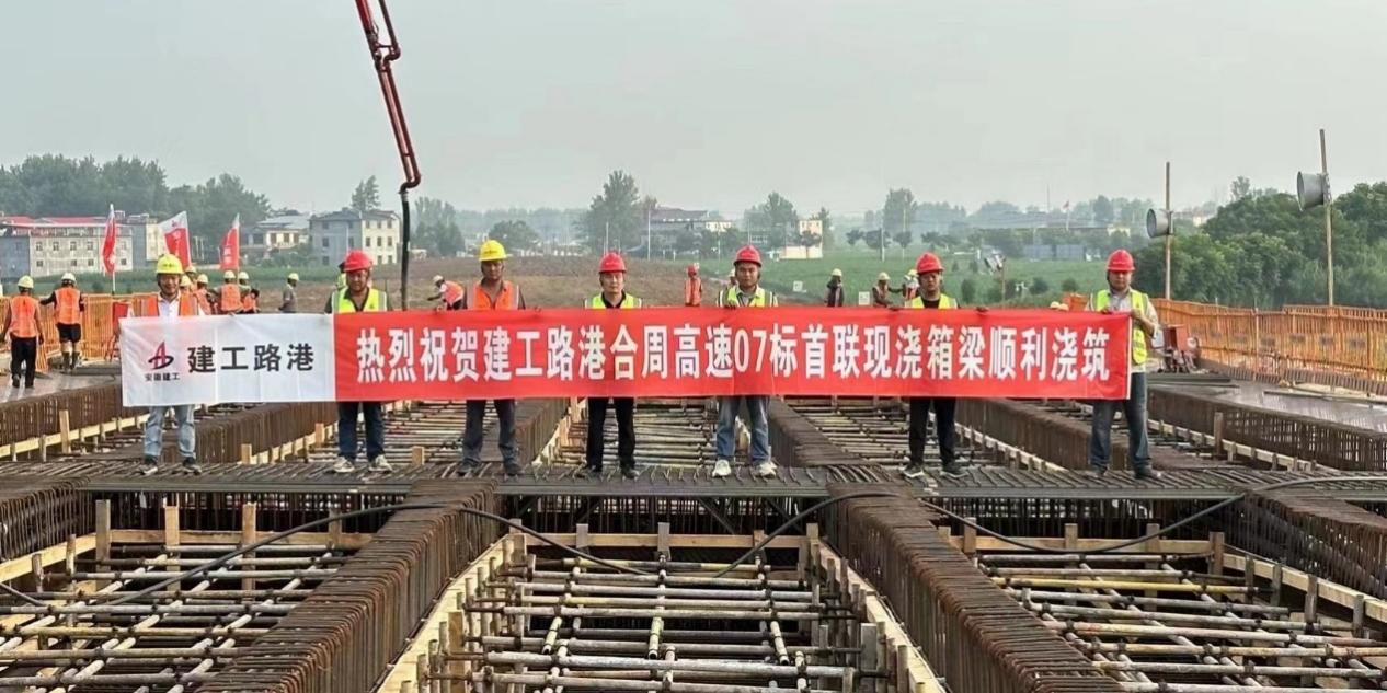 7月26日上午六時十八分,合周高速潁臨段路基07標首聯(lián)現(xiàn)澆箱梁在兩臺泵車隆隆的作業(yè)聲中順利開始澆筑,較計劃工期提前了一周。