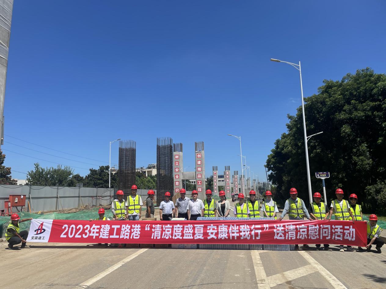 炎炎夏日,錢葉琳一行給堅守一線的施工人員送來防暑降溫物品,同時,深入施工現場,了解項目安全生產情況,要求及時動態調整高溫天氣作息時間,做好防暑工作,及時了解作業人員身心健康,確保安全生產。隨后,錢葉琳一行來到項目部,與一線職工親切交談,從安全生產、工程進度、質量管理、成本管理、團隊建設及黨建工作等方面進行座談交流。