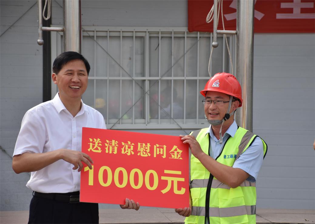 左年文聽取了項目負責人關于工程進展、重難點等情況的匯報,并對現階段項目建設存在的難點予以協調,左年文對酷暑天氣仍堅守施工崗位的一線施工人員表示感謝,為他們送上防暑降溫物品。同時叮囑項目管理人員要及時動態調整高溫天氣作息時間,做好防暑工作,了解作業人員身心健康,確保安全生產。