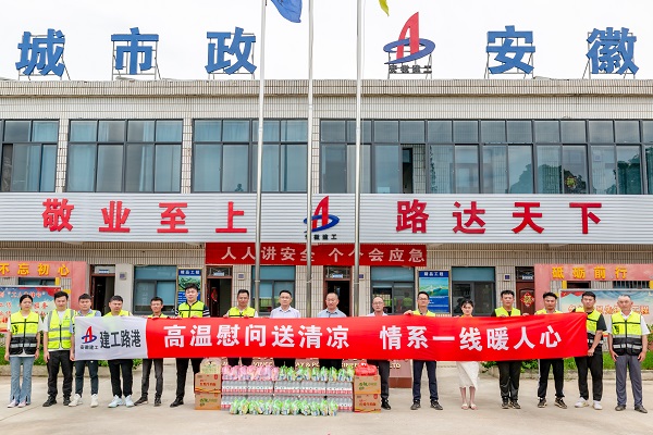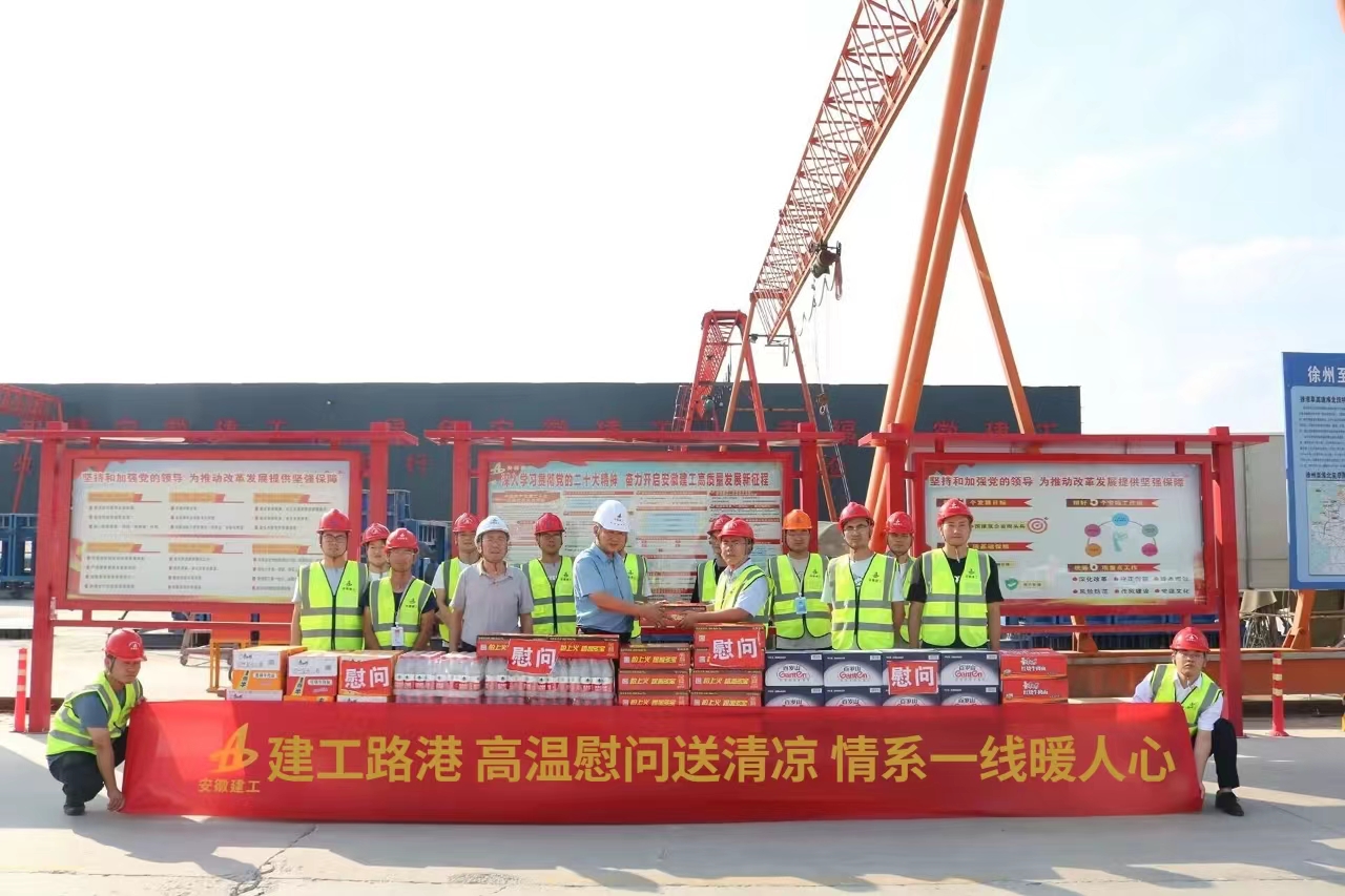 烈日炎炎送清涼,點滴關懷暖人心。為切實做好夏季防暑降溫工作,保障廣大職工生命安全和身心健康,提升職工的凝聚力、向心力和戰斗力。入伏后,建工路港黨委書記、董事長錢葉琳,黨委副書記、總經理、董事李建成等公司領導班子成員分赴項目現場開展“送清涼”慰問活動,對在炎炎烈日下依然堅守崗位、辛勤付出的一線職工表示感謝,為奮戰在高溫一線的勞動者們送上一份清涼、一份關懷。