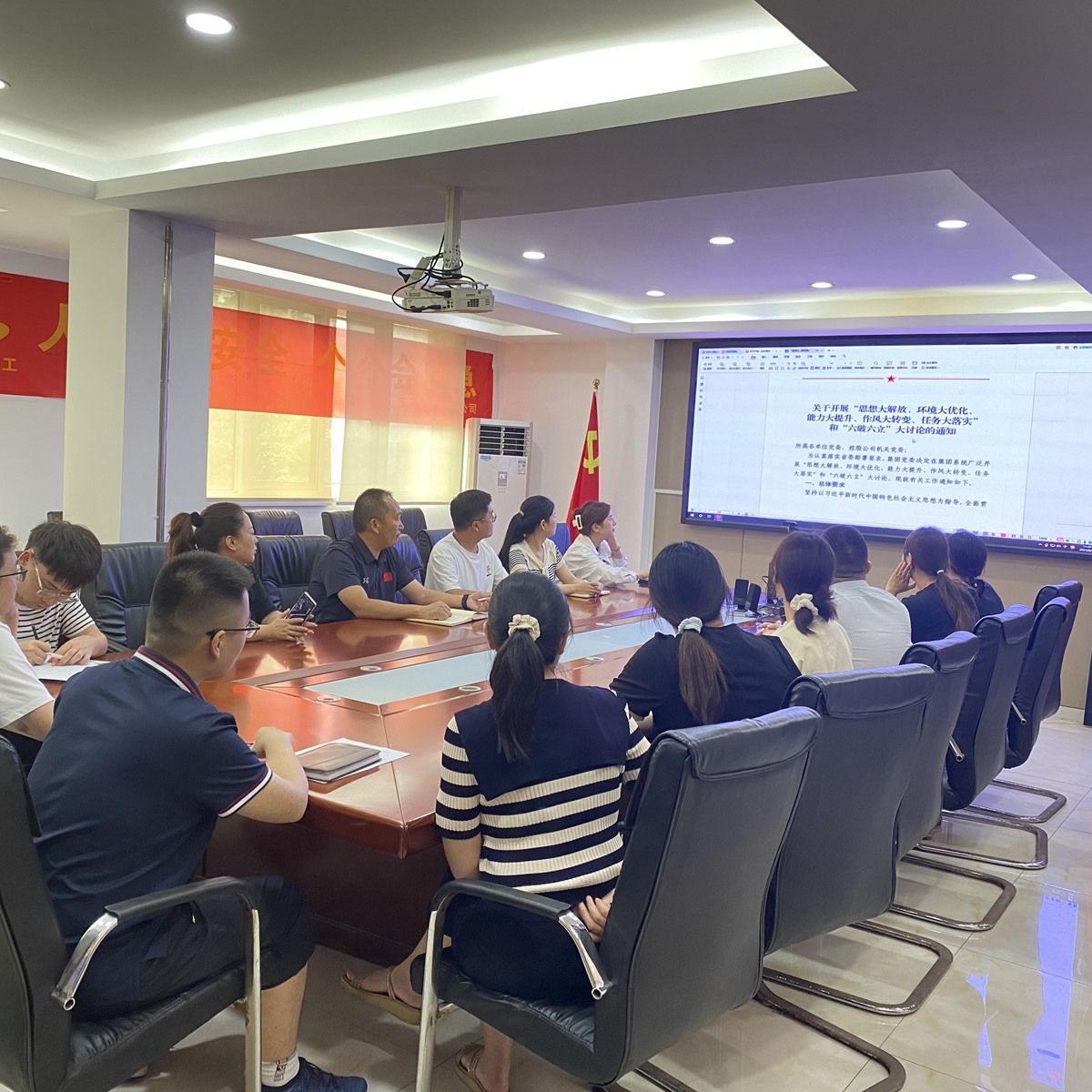 市政分公司圍繞“五大”要求、“六破六立”開展大討論動(dòng)員會(huì),分公司機(jī)關(guān)全體人員參加會(huì)議。