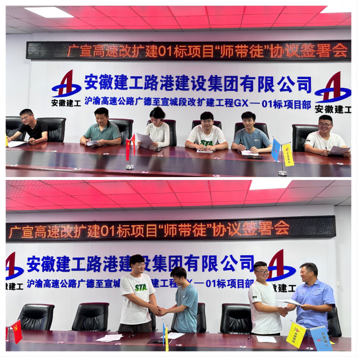 8月24日,G530黃山市黟縣縣城至休寧東亭改建項目舉辦“師帶徒”簽約儀式。項目根據新員工的專業特長,確定其培養發展方向,制定有針對性的培養目標和計劃。師父向徒弟提供一對一的幫助與指導,以快速提高新員工的職業道德、理論水平和實際工作能力。