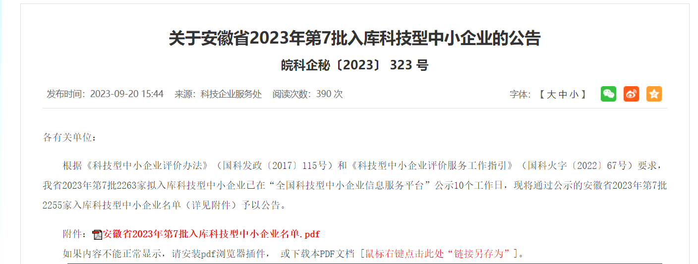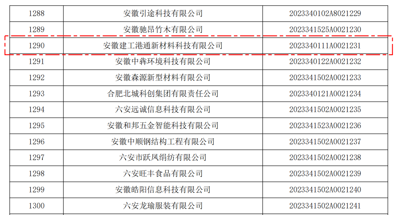 9月20日,安徽省科技廳公布了2023年第7批入庫科技型中小企業名單,安徽建工港通新材料科技有限公司榮列其中。