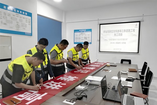 圍繞以“增強質量意識,推進高質量發展”為主題的第46個全國“質量月”,新站雙鳳路項目積極落實上級要求,深入開展多項“質量月”活動。