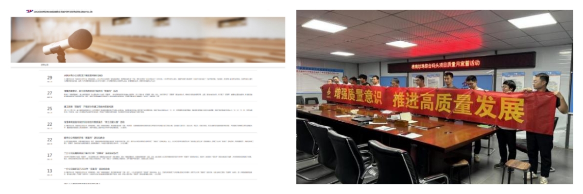 主題宣傳,營造質量發展氛圍。公司機關、分子公司及所屬項目部通過在辦公場所、施工現場等醒目位置懸掛“2023年全國質量月活動口號”條幅,并利用公司網站、宣傳欄等多種渠道形式,普及質量知識和質量法規,增強全體人員的質量主體意識。